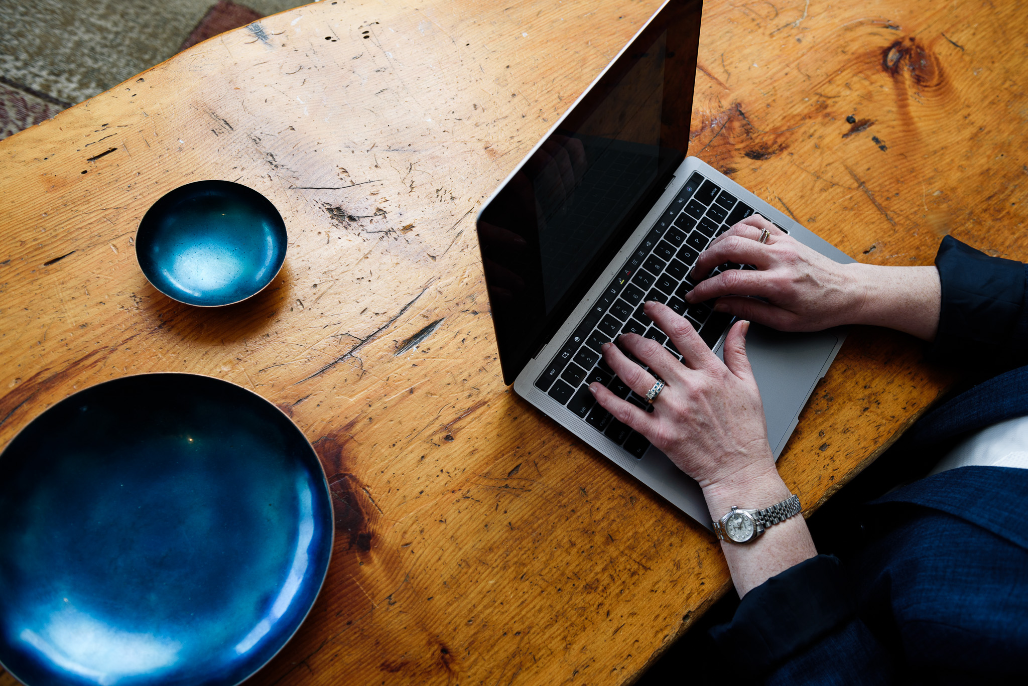 With a very high-end customer base, her images need to reflect that but also give a little insight into who she was. We opted to work in her home outside Lubec, Maine as that was where she did a lot of work if she wasn’t traveling. Amy had a beautiful view of the mountains and we set up in her spacious living room for a few different looks.