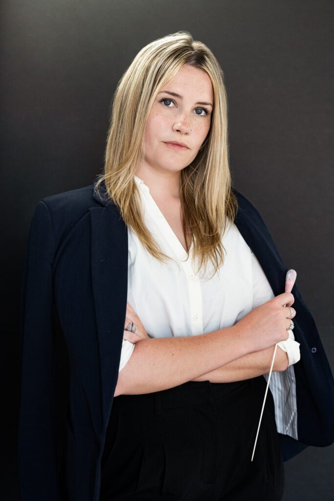 A little refresh for her website was in order. She wanted to include the Conductor’s instrument, the baton and ended up with several images to work with. We started with a more formal look with a blazer and collared shirt and then had to try something different that expressed her determination and work ethic.